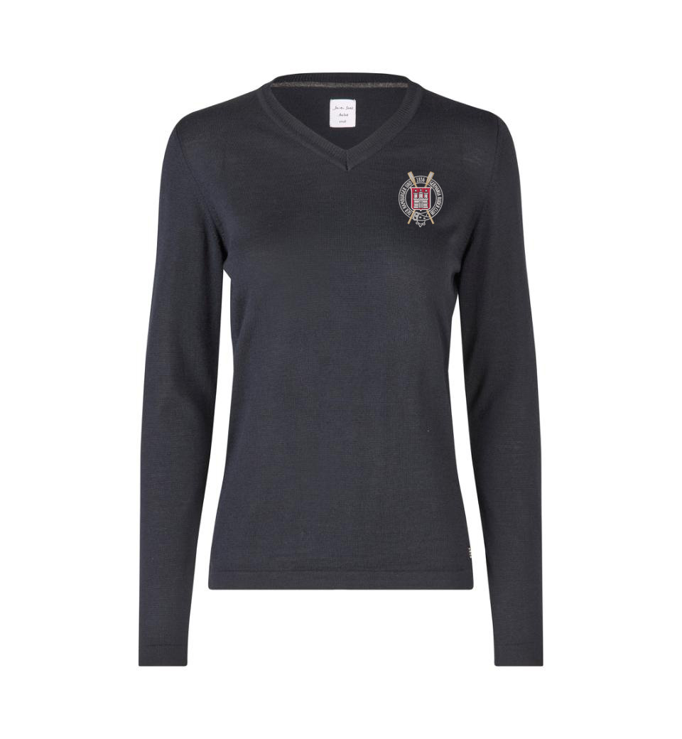 - Damen-Pullover mit V-Ausschnitt aus weicher, mulesingfreier Merinowolle.