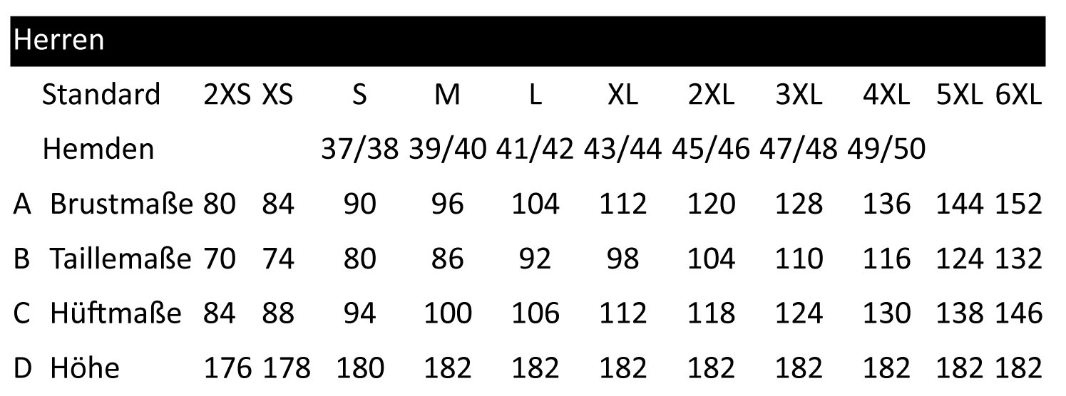 Material: 50% Wolle / 50% Polyacryl; Größen S (46), M (48), L (50), XL (52), XXL (54), 3XL (56)